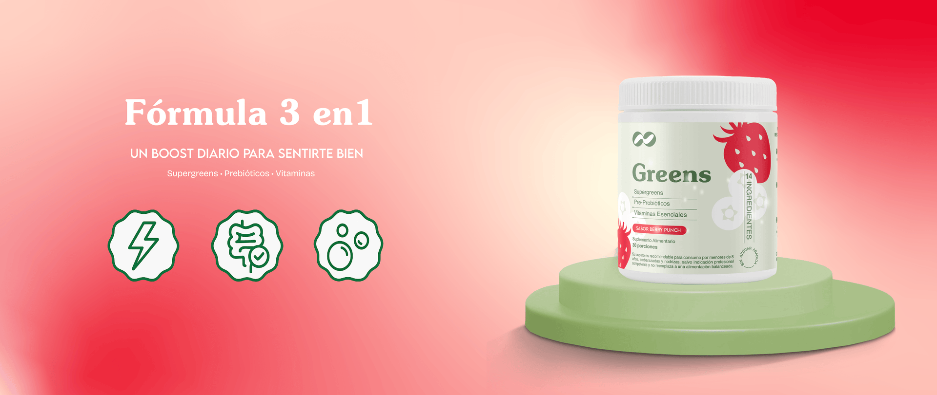 Greens tiene solo 14 ingredientes esenciales: superfoods, greens y nutrientes naturales seleccionados para ayudar a desinflamar, equilibrar tu cuerpo y darte un glow real desde adentro. Una fórmula limpia, vegana y sin rellenos. Cuidado consciente, respaldado por ciencia y calma.