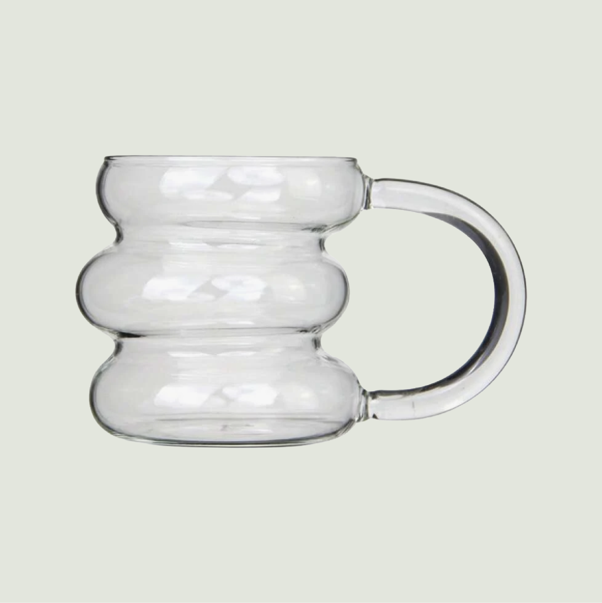 Dale un toque único a tu rutina con nuestra taza de vidrio de borosilicato de 350 ml, resistente, liviana y perfecta para el uso diario. Su diseño inspirado en una nube aporta un look suave y moderno que eleva cualquier espacio.